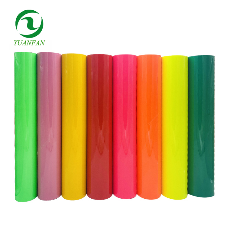 The invention relates to a multi-color patterned hot melt adhesive heat transfer vinyl